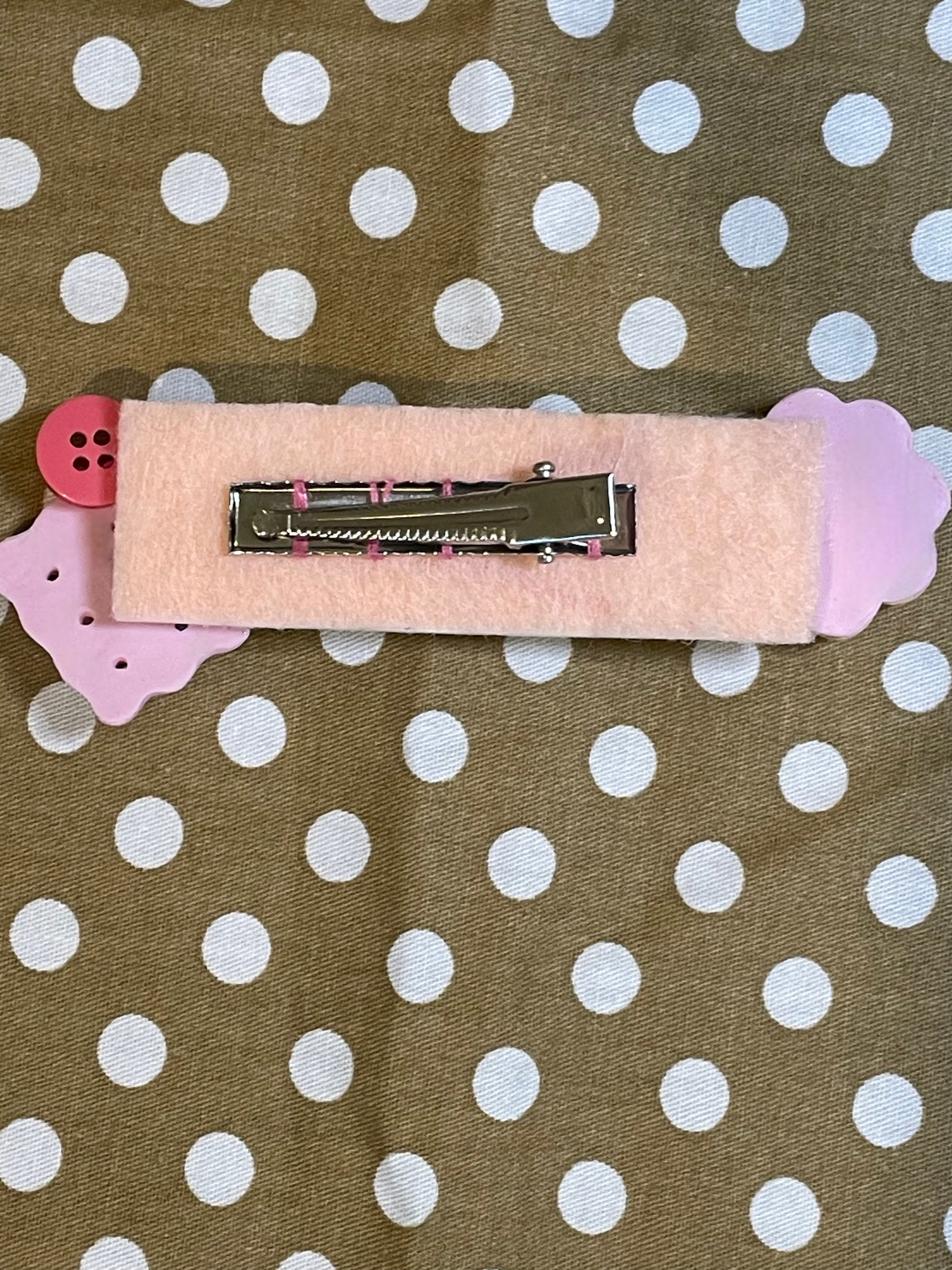 ☆On the back it has felt backing to protect your hair and a standard metal clip sewn on for further security!